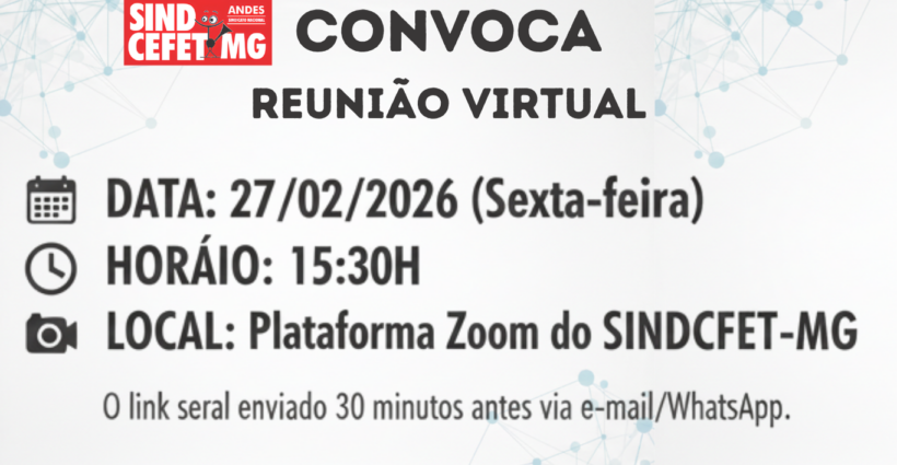 A diretoria do SINDCEFET-MG convoca o conjunto da categoria docente da instituição para a reunião virtual.