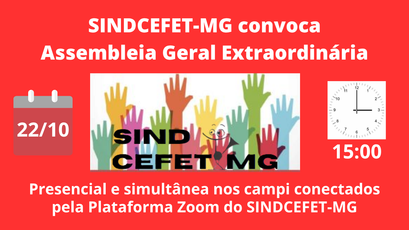 O Sindicato dos Docentes do CEFET-MG, Seção Sindical do ANDES-SN, (SINDCEFET-MG) convoca toda a categoria para uma Assembleia Geral Extraordinária, que ocorrerá no dia 22 de outubro, com primeira convocação às 15h. de forma presencial e simultânea nos campi, conectadas pela plataforma zoom do SINDCEFET-MG. O local em cada unidade será informado posteriormente a essa convocação. […]