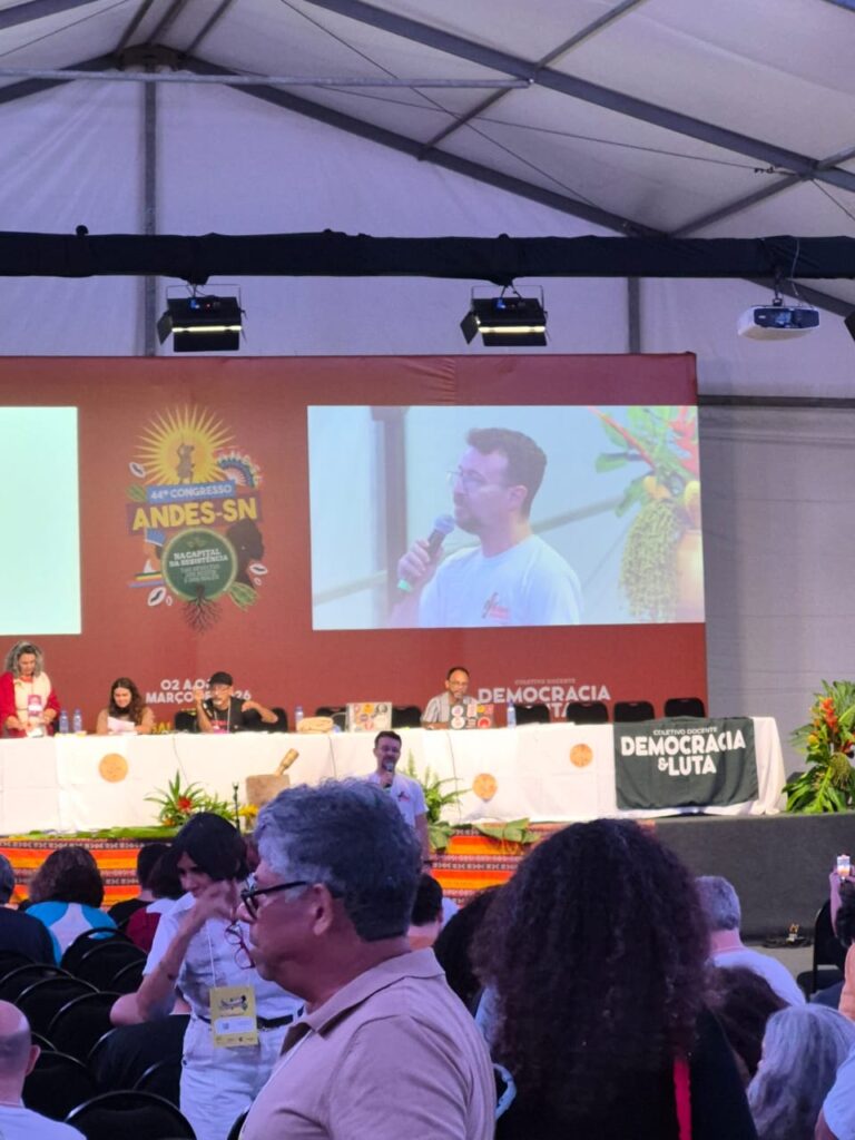 Ao final, o presidente Sindicato Nacional reforçou a importância da unidade e da mobilização da categoria, diante do cenário político atual. “A derrota da extrema direita não se dará em um único momento. Ela exige organização permanente, mobilização nas ruas e unidade entre os movimentos sociais e sindicais”, concluiu, ao declarar aberto o 44º Congresso do ANDES-SN.