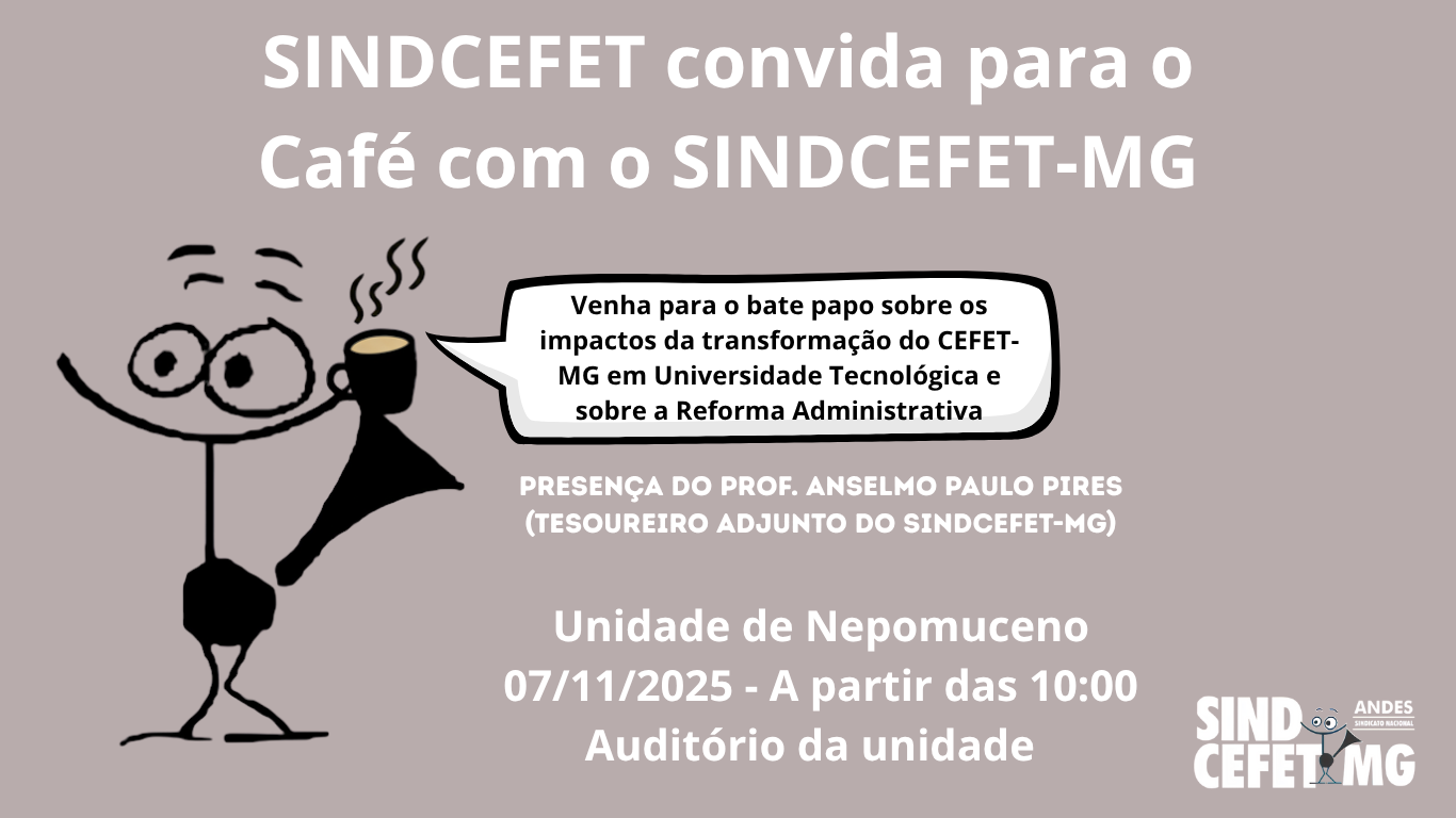 O SINDCEFET-MG convida os funcionários de Nepomuceno para um Café em 07/11/25 às 10h